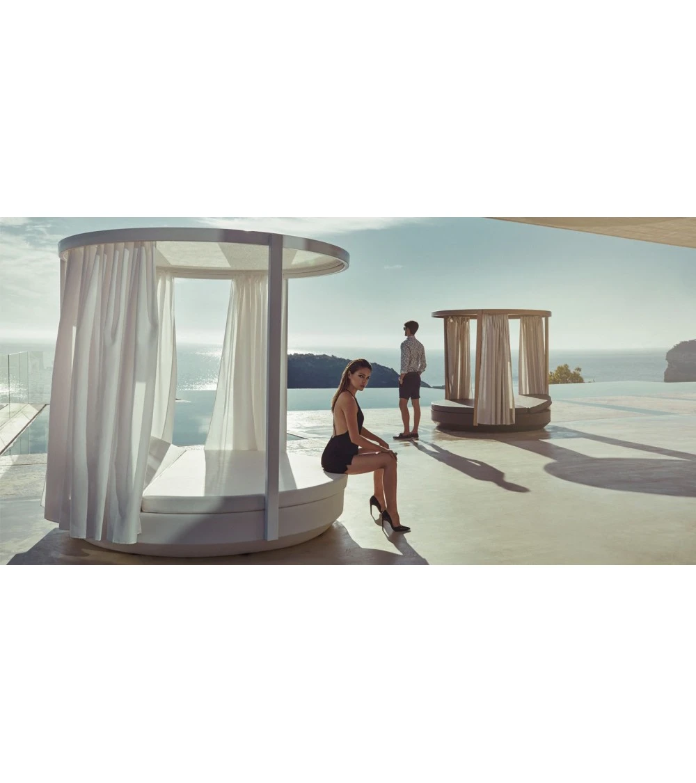 Le auvent rond inclinable mat VELA DAYBED de Vondom combine le lit de jardin rond VELA et le gazebo VELA.
