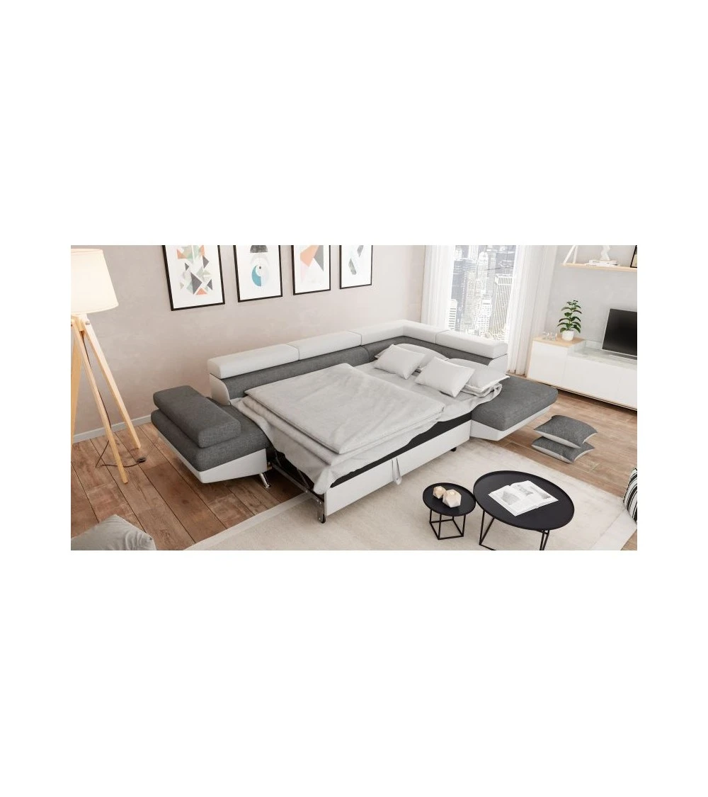 Ce canapé d’angle 5 places convertible RIO offre de nombreuses possibilités : une large méridienne pour étendre ses jambes, un accoudoir relevable, des têtières ajustables indépendamment, mais surtout, ce canapé d’angle se transforme en lit très facilement. Cerise sur le gâteau, sa méridienne se soulève pour laisser place à un coffre de rangement. Côté design, ses lignes droites lui permettent de s’adapter à tous les intérieurs.