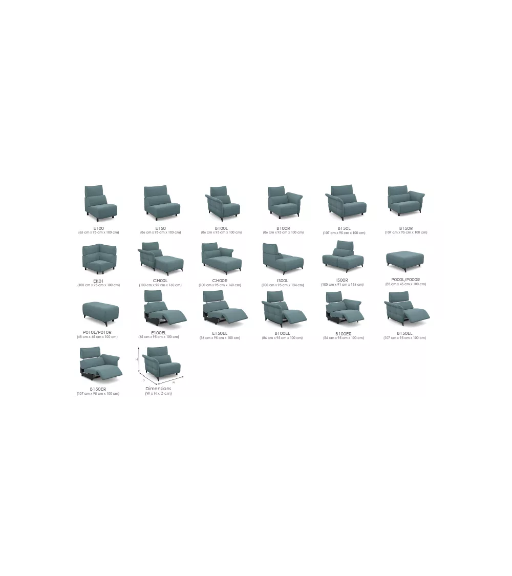 Hauteur d’assise: 44 cm / Hauteur de caisse: 95 cm / Profondeur d’assise: 59 cm /