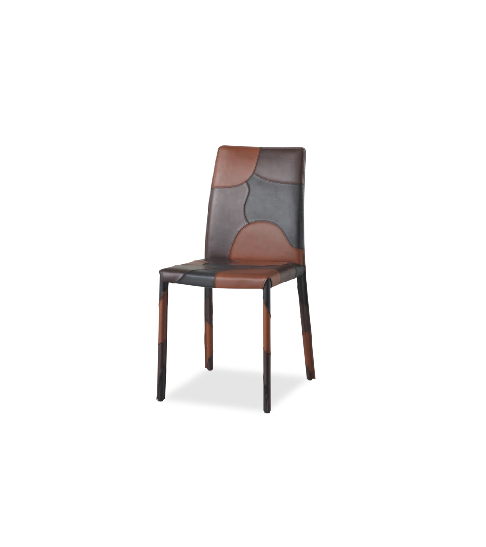 Exemple de maĂźtrise dans le travail du cuir, cette chaise dĂ©fie lâexaminateur le plus exigeant en proposant une finition exclusive. Le revĂȘtement est rĂ©alisĂ© Ă partir de petites piĂšces de cuir en diffĂ©rentes couleurs, juxtaposĂ©es avec harmonie et assemblĂ©es, rappelant les courtepointes de la tradition anglo-saxonne. Les coutures sont un Ă©lĂ©ment dĂ©coratif qui souligne lâexcellence de lâouvrage.