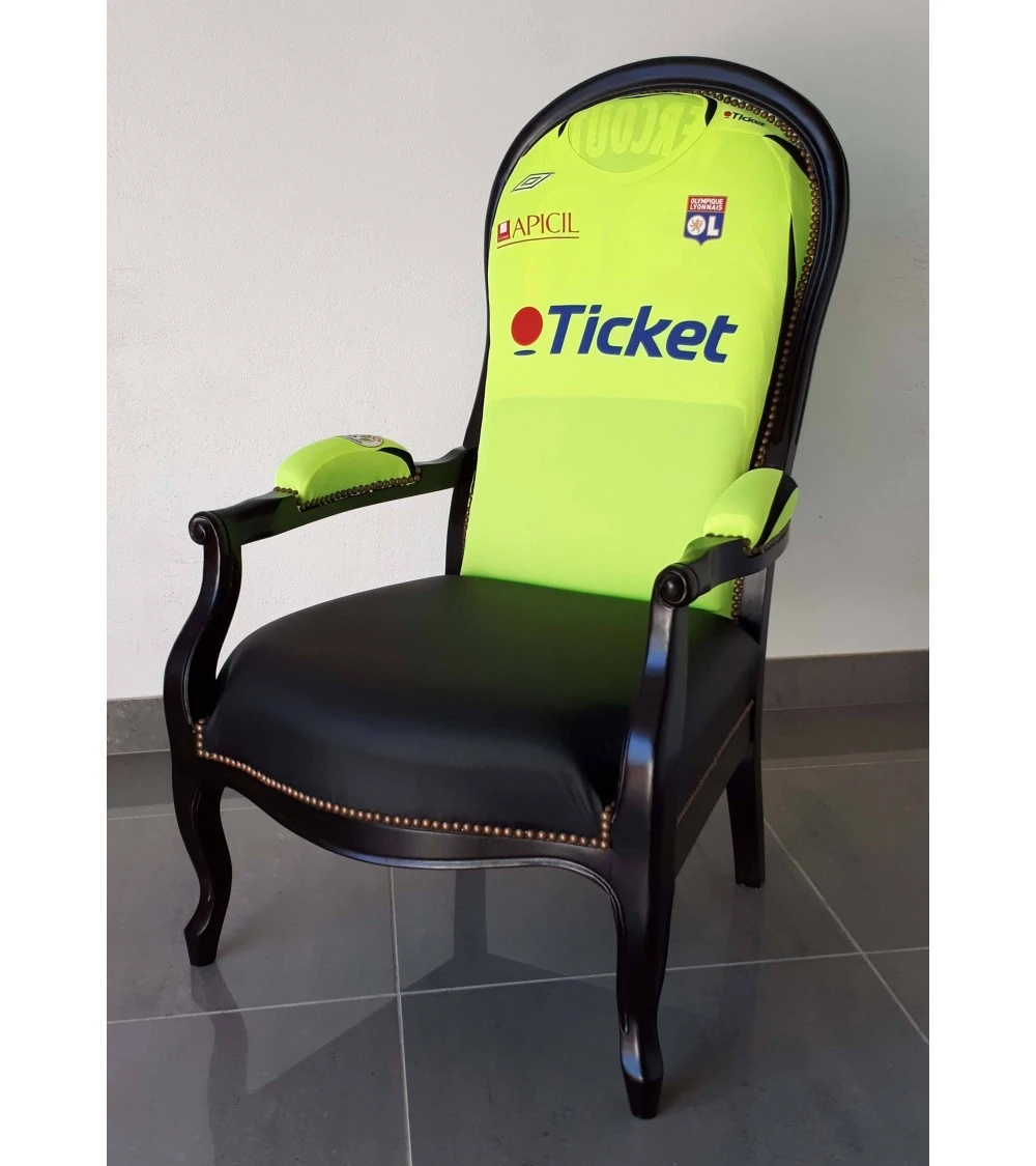 POUR TOUS LES SPORTIF, rien de mieux que ce grand fauteuil confortable à haut dossier avec accoudoirs larges. Son rembourrage et sa structure participent au bon maintien de votre dos pour plus de détente. D’une finition impeccable, l’ensemble du fauteuil est recouvert de maillot de votre club préféré !Fabriqué en France par carayon.Une idée de cadeaux pour la retraite des sportifs.
