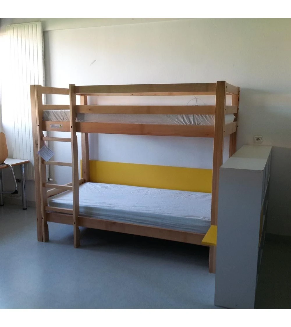 Des lits superposés en hêtre massif à la solidité éprouvée. Ultra résistants, ce sont des lits adaptés à un public difficile, idéal pour des hébergements collectifs. Des lits fabriqués en France dans nos ateliers.