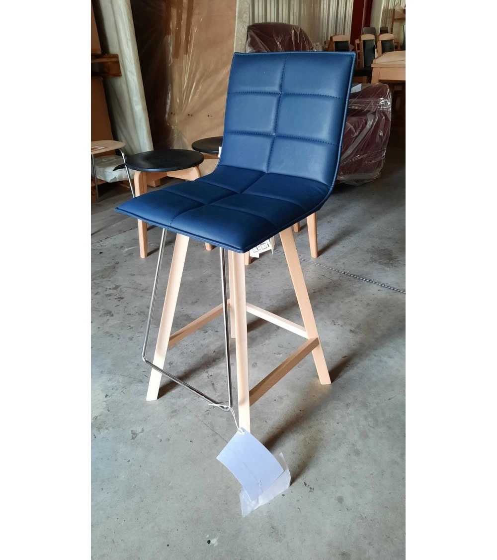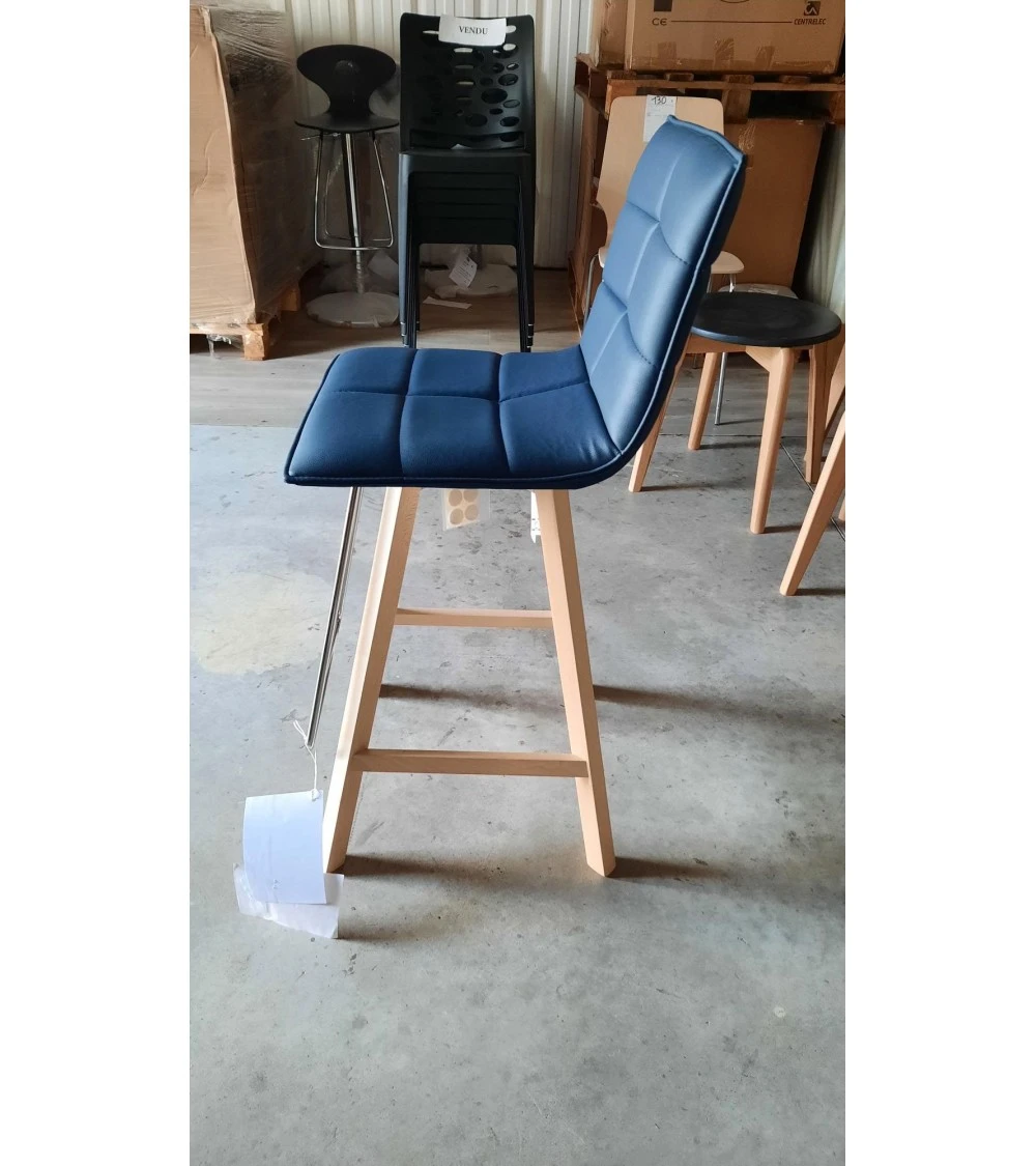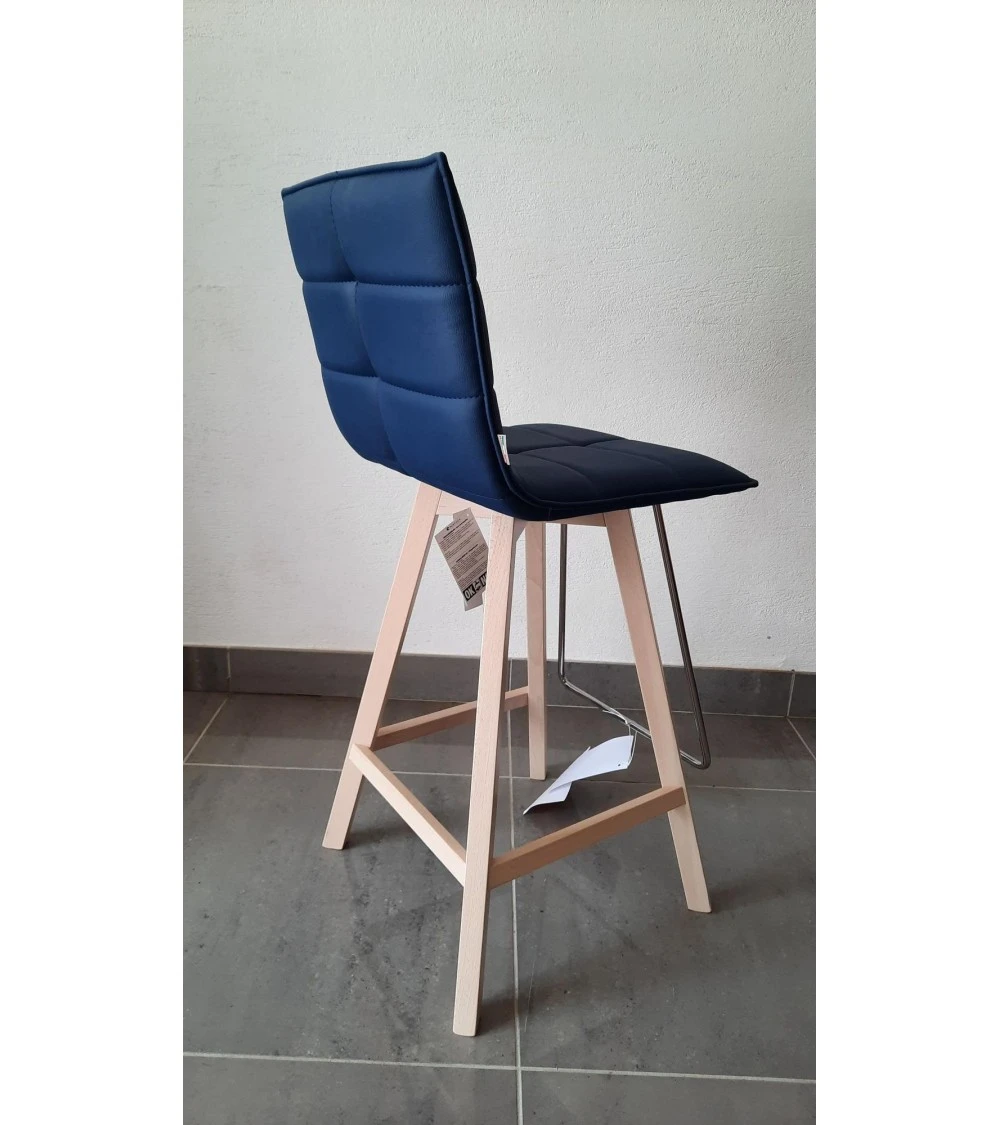 Tabouret de bar design IRIS NATISA en version 4 pieds, doté d’une structure en hêtre, d’un repose-pied et d’une assise souple et confortable recouverte de textile enduit. Repose pied acier chromé.