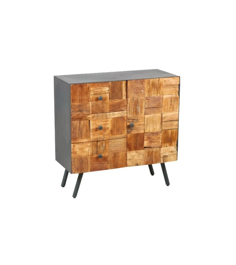 Meuble d’entrée possédant une structure en acier laqué noir fabriquée par Meubles du monde.