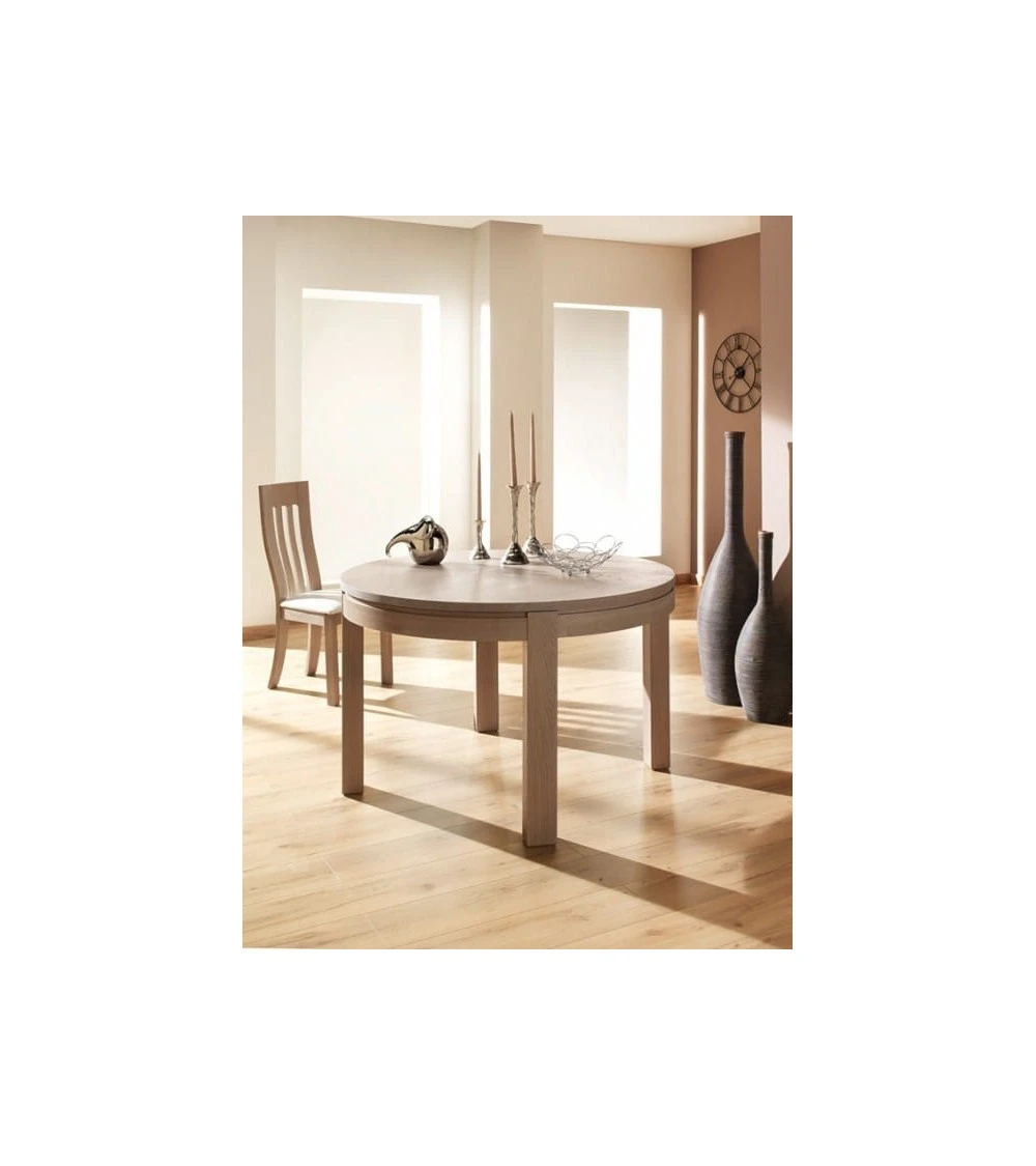 Table Mercier Tapana ronde. Table ronde, idéale si votre salle à manger possède peu de places. Grâce à ses allonges gagnez rapidement de la place supplémentaire pour recevoir vos amis. Possible motif verre ou céramique au centre de la table.